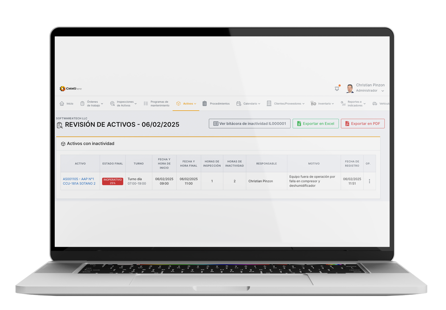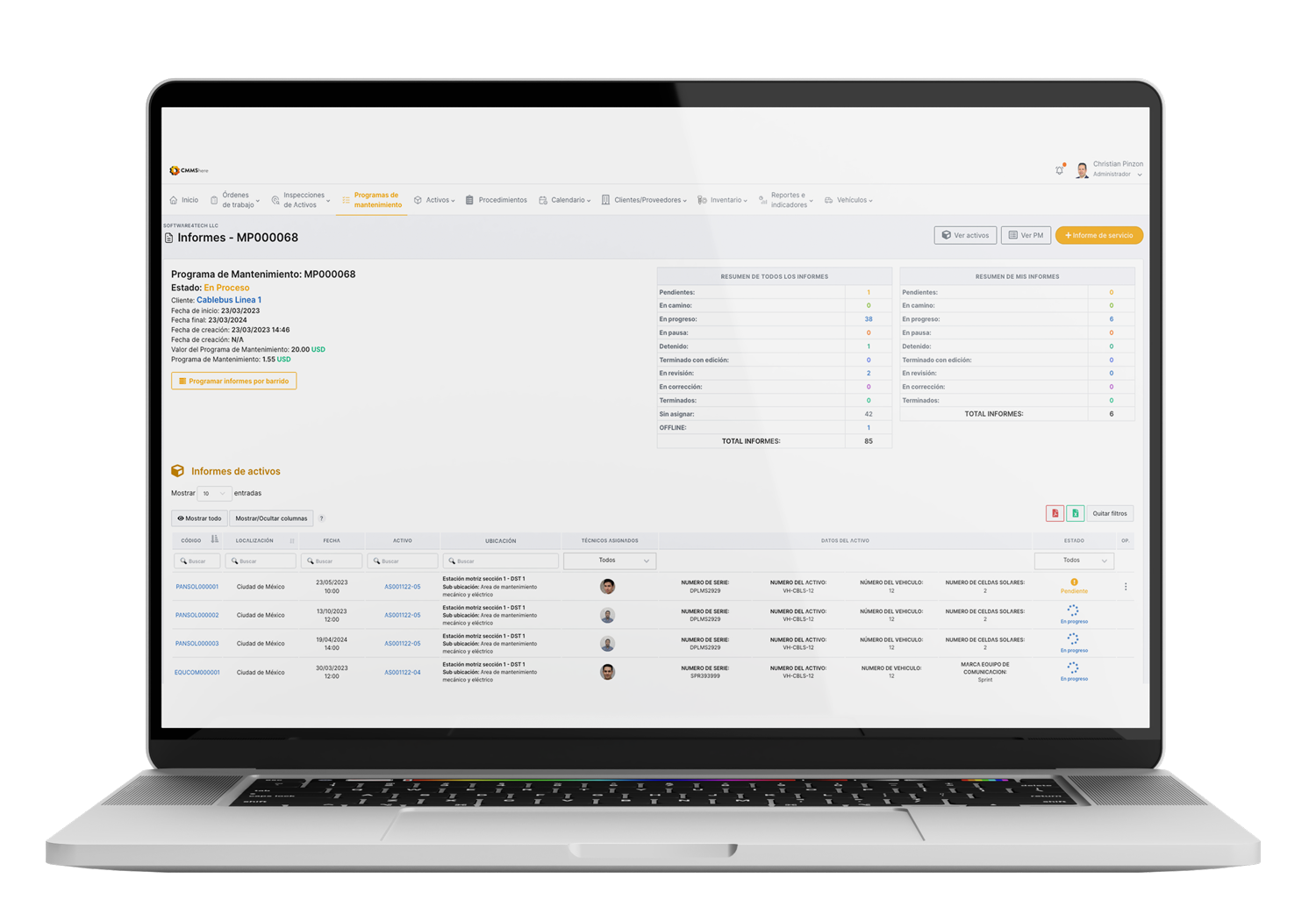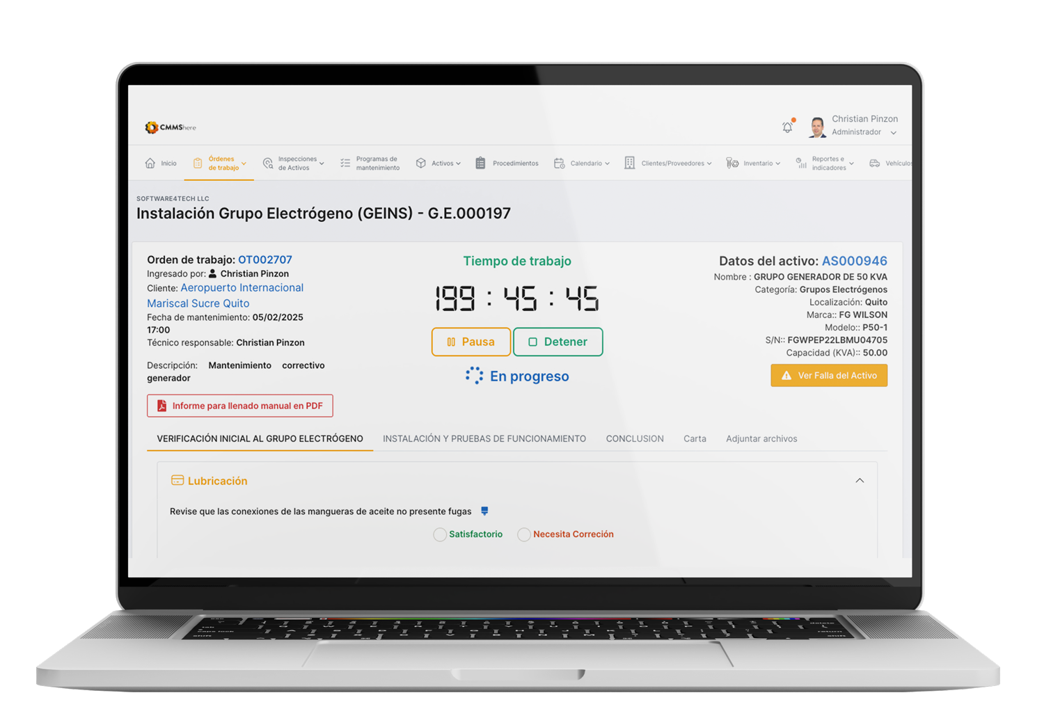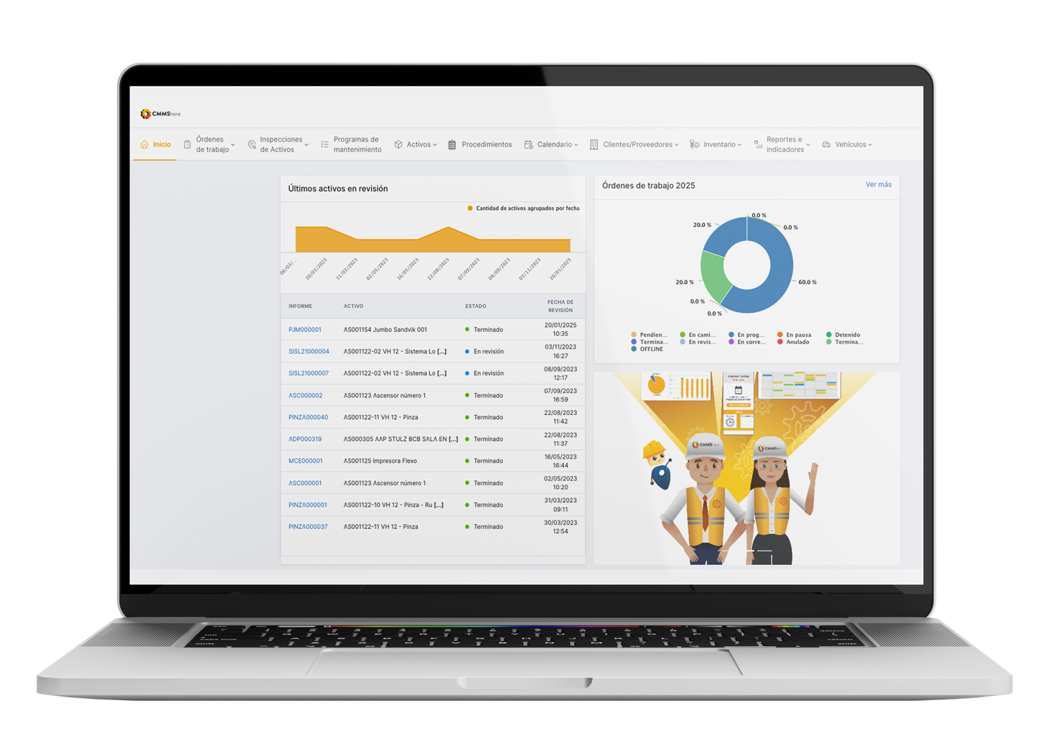 Nuestro CMMS/GMAO es la herramienta clave para administrar el mantenimiento de forma integral y sistematizada en tu empresa. Desde la programación de tareas hasta el seguimiento de activos, te proporciona una visión panoramica total de la gestión para garantizar un rendimiento continuo y reducir tiempos de inactividad no planificados de los equipos.