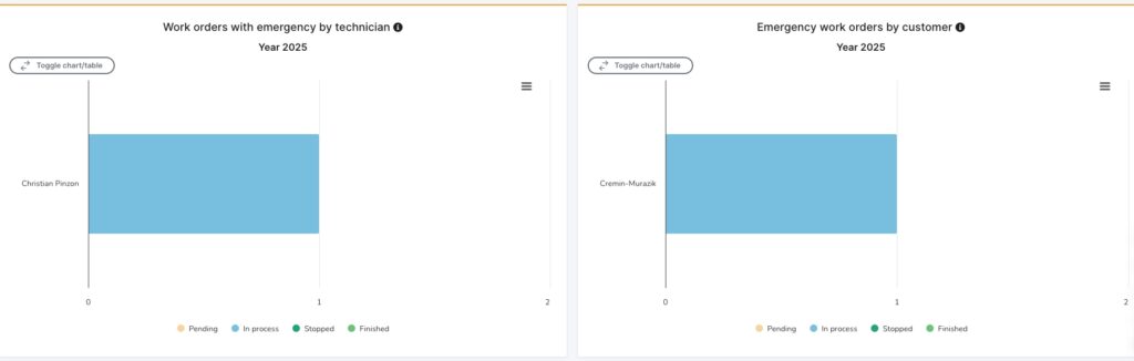 CMMShere offers indicators such as MTBF (Mean Time Between Failures), MTTR (Mean Time to Repair) and availability, allowing the identification of critical assets and recurring tasks.